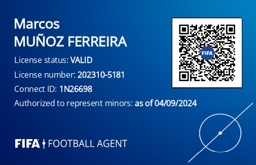Official website of Marcos Muñoz Fareira — Licensed FIFA Player Agent representing professional footballers worldwide